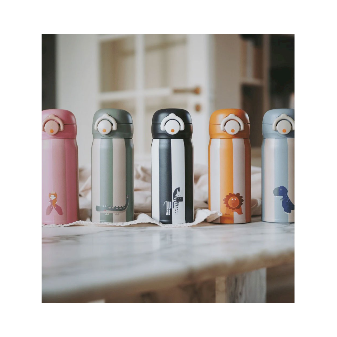 Botella de Acero Térmica Noui Dino 350 Ml, ideal para niños en edad preescolar y escolar.