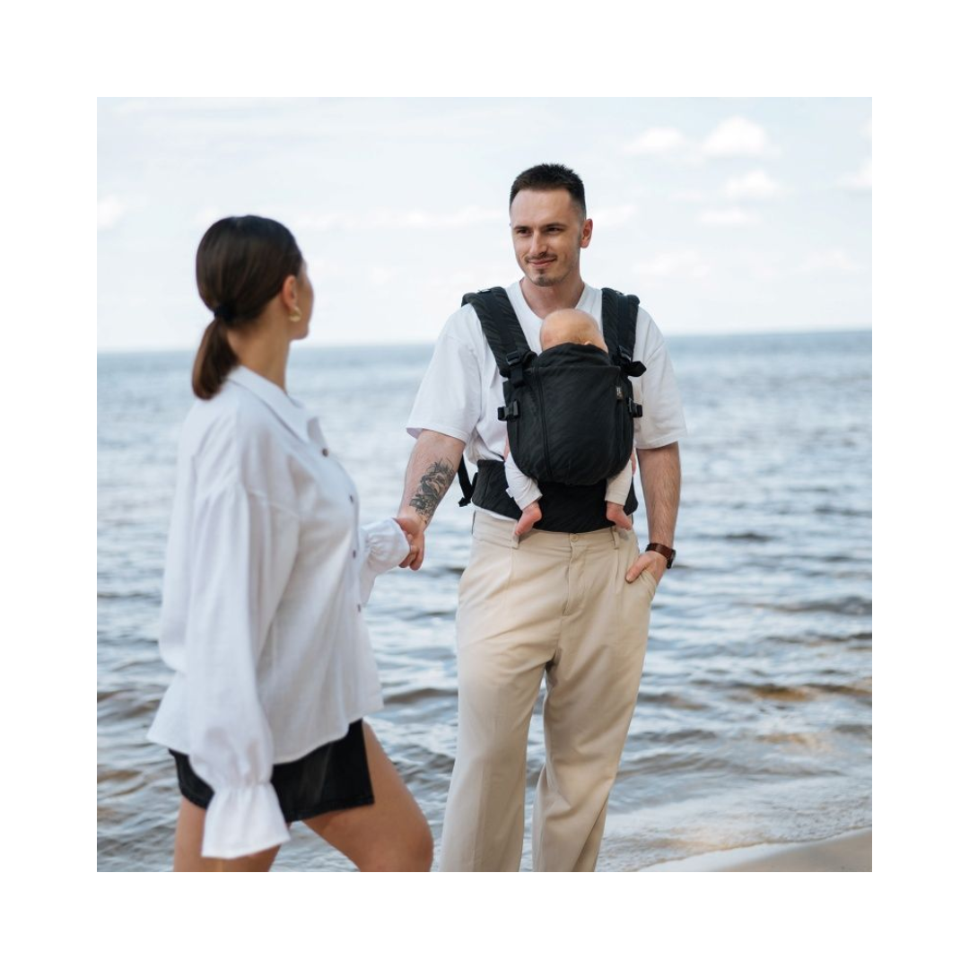 Este producto está diseñado para ofrecer un soporte ergonómico integral desde el nacimiento del bebé hasta los 24 meses. Respeta la posición «M» de las caderas en cada etapa, gracias a su diseño evolutivo que se adapta al tamaño exacto del bebé.