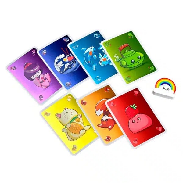 ¡Juega con ellos y consigue hacer las mejores combinaciones para ganar puntos! Intuye qué colores jugarán los demás para llevarte cartas, formar arcoíris y ser quien tenga más puntos al final de la partida. Pero, cuidado, ¡repetir colores te hará perderlos!
