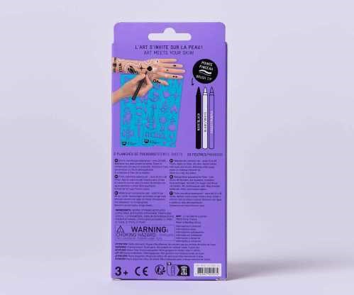 CONTIENE TRES ROTULADORES (NEGRO-BLANCO-LILA) + 35 PLANTILLAS PARA TATUARSE